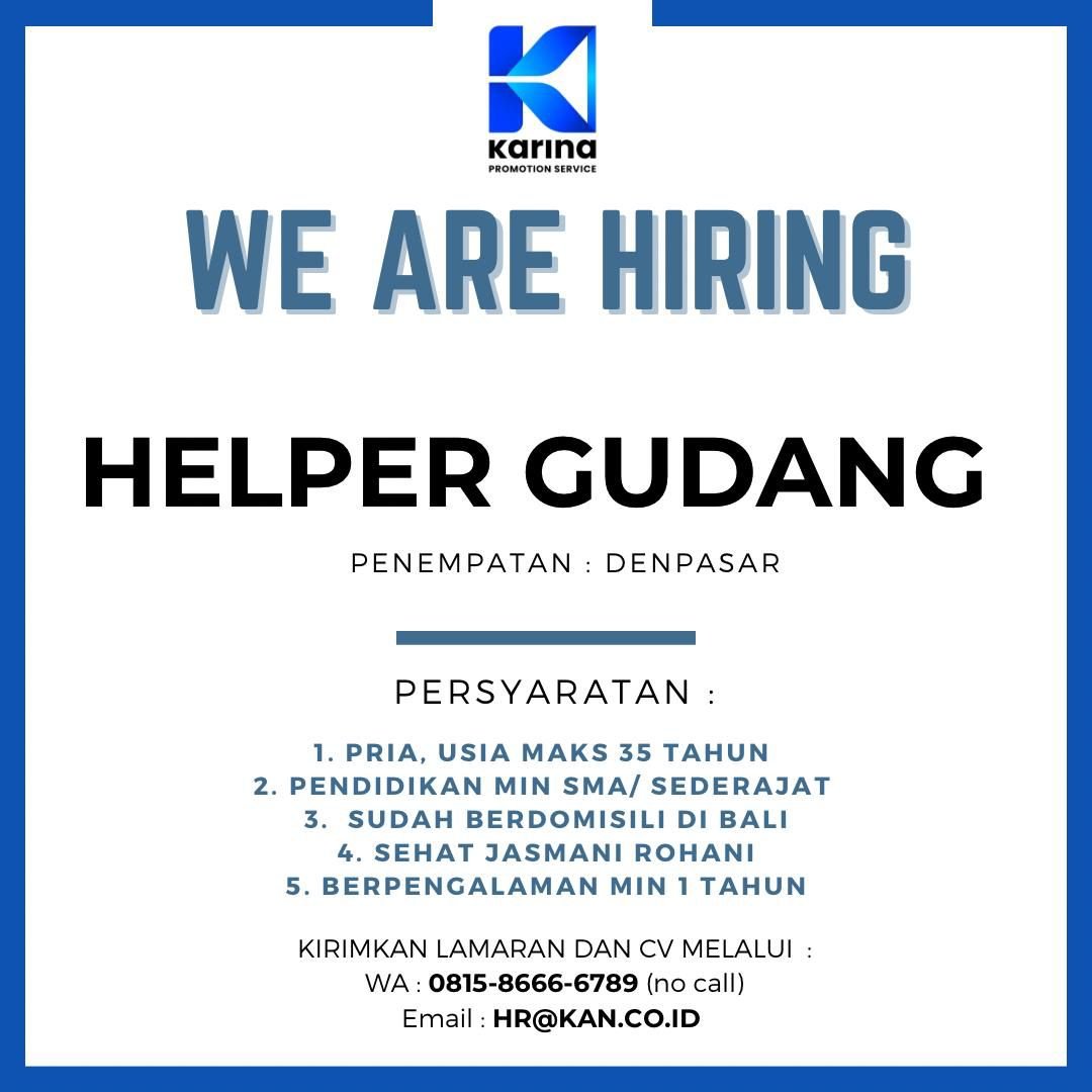 DENPASAR, BALI – Karina Elektronik, sebuah perusahaan penyedia layanan promosi, membuka kesempatan kerja bagi individu yang siap bekerja keras dan bertanggung jawab di posisi Helper Gudang. Penempatan lowongan ini berada di wilayah Denpasar, Bali.