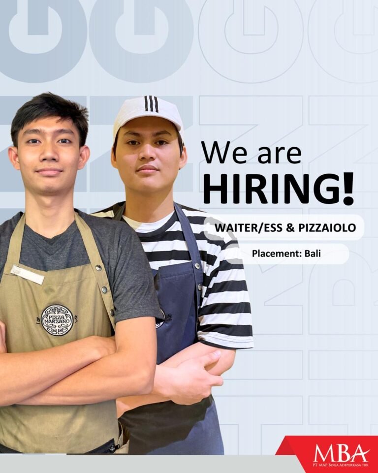 Bali – Jaringan restoran internasional Pizza Marzano kembali membuka peluang kerja bagi tenaga profesional di industri FnB. Untuk memperkuat operasional di wilayah Bali, perusahaan mengumumkan dua lowongan penting, yakni Waiter/Waitress dan Pizzaiolo.