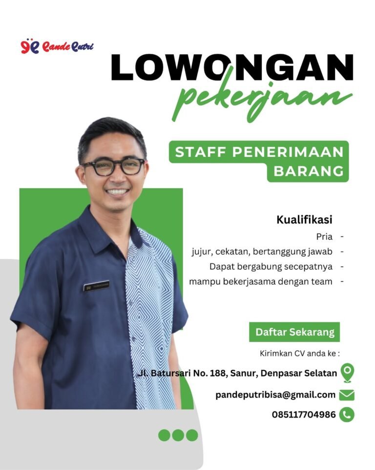LOKER.BALINEWS.ID, DENPASAR – Pande Putri, salah satu jaringan ritel yang terus berkembang di Bali, saat ini membuka kesempatan karier bagi tenaga kerja pria untuk memperkuat tim operasional mereka. Perusahaan secara resmi membuka rekrutmen untuk posisi Staff Penerimaan Barang. Lowongan ini dikhususkan bagi Anda yang memiliki ketelitian tinggi dan siap bekerja di lingkungan pergudangan serta distribusi ritel yang dinamis di kawasan Sanur, Denpasar Selatan.