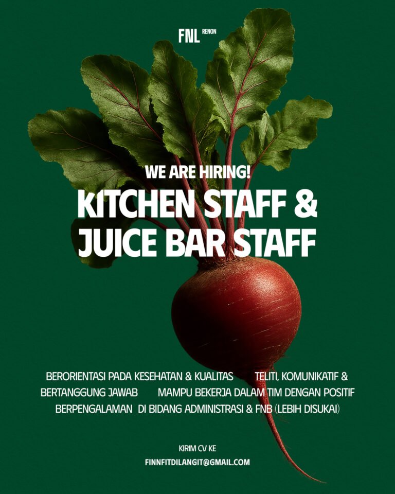 FNL Renon membuka kesempatan bagi kandidat yang berorientasi pada kesehatan dan kualitas untuk bergabung sebagai Kitchen Staff dan Juice Bar Staff. Posisi ini cocok untuk individu yang teliti, komunikatif, serta mampu bekerja dalam tim dengan sikap positif.