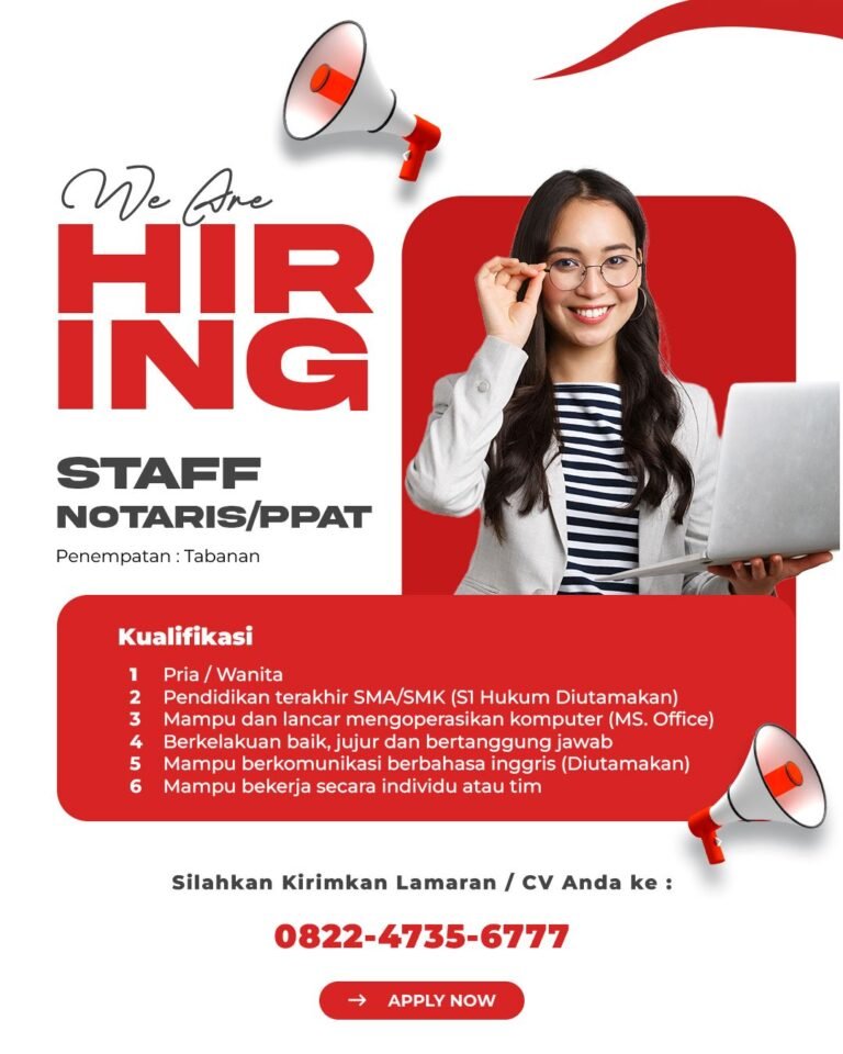 A Notary/PPAT office is looking for a new Staff Member to join our team in Tabanan! 🇮🇩