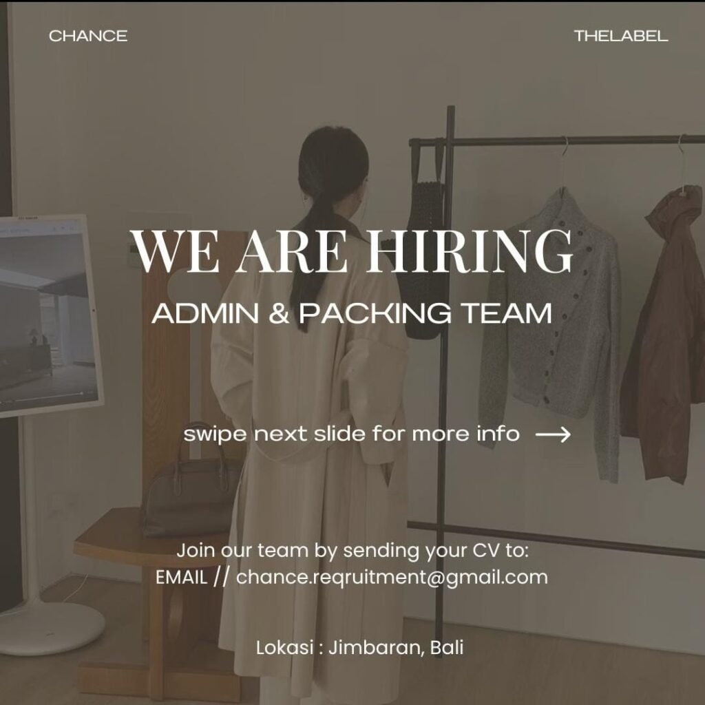 Chance The Label is looking for a dedicated Admin Online Shop to join our team in Jimbaran! 🇮🇩