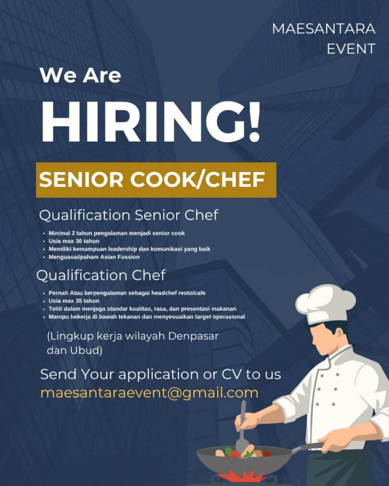 Minimal 2 tahun pengalaman sebagai Senior Cook