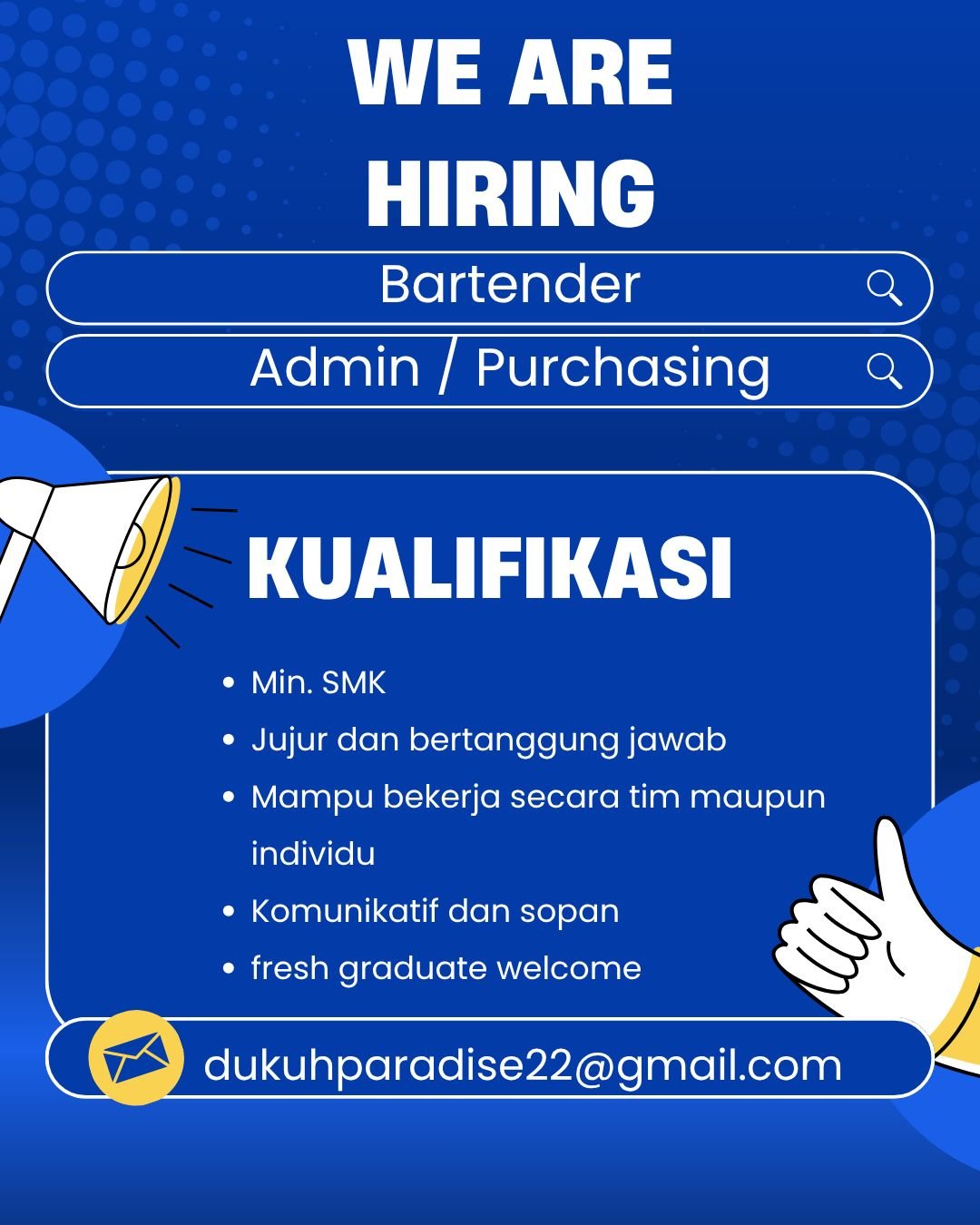 Dukuh Paradise saat ini membuka kesempatan bergabung untuk posisi: