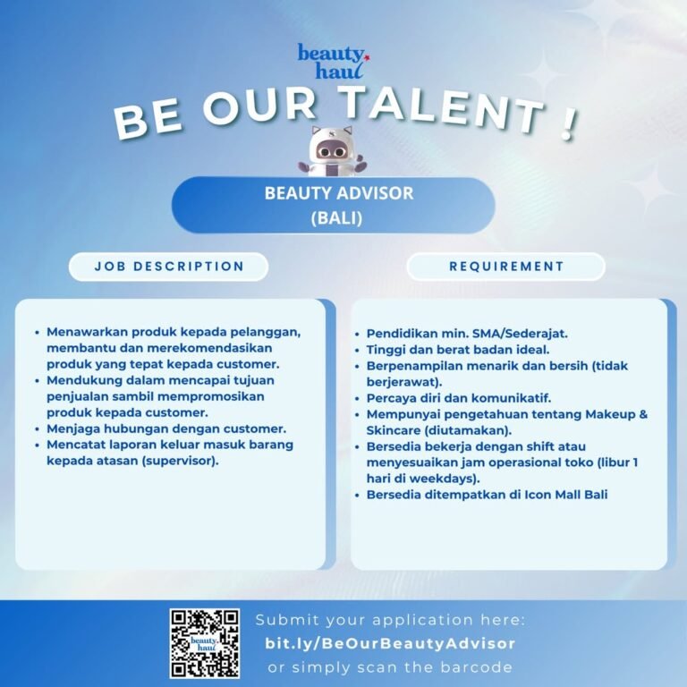 Beauty Haul is looking for a new Beauty Advisor to be our talent at Icon Mall Bali! 🇮🇩