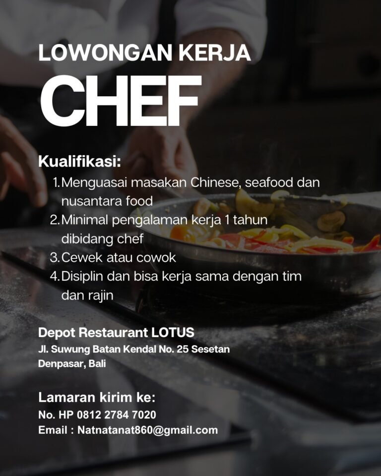 Depot Restaurant Lotus is looking for a new Chef to join our culinary team in Sesetan, Denpasar! 🇮🇩
