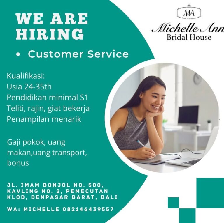 Michelle Ann Bridal House membuka kesempatan bagi kandidat profesional untuk bergabung sebagai Customer Service di Denpasar, Bali.