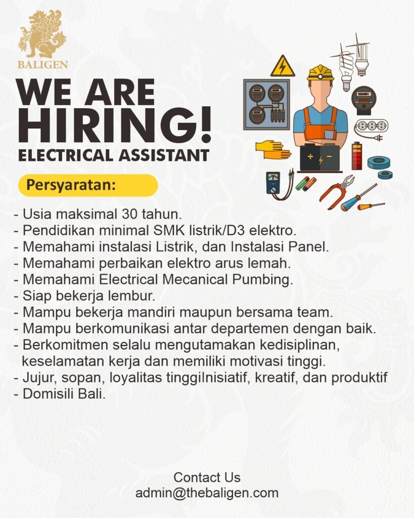 Baligen is looking for a new Electrical Assistant to join our dedicated team in Bali! 🇮🇩