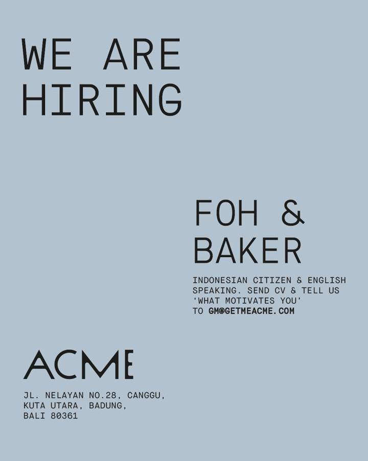 ACME is looking for FOH & Baker in Canggu, Bali 🇮🇩