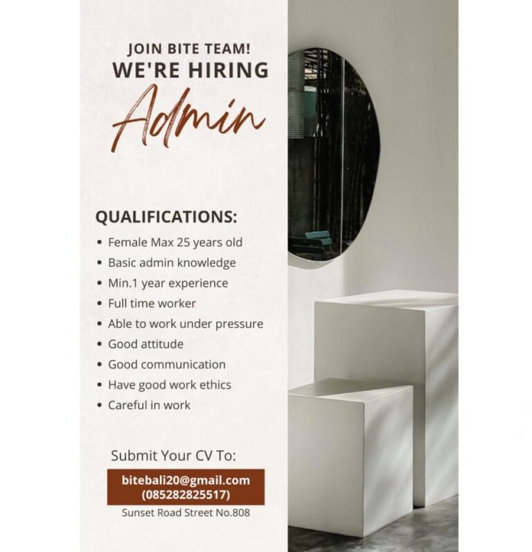 Bite Bali is looking for a dedicated full-time Admin to join our team! 🇮🇩