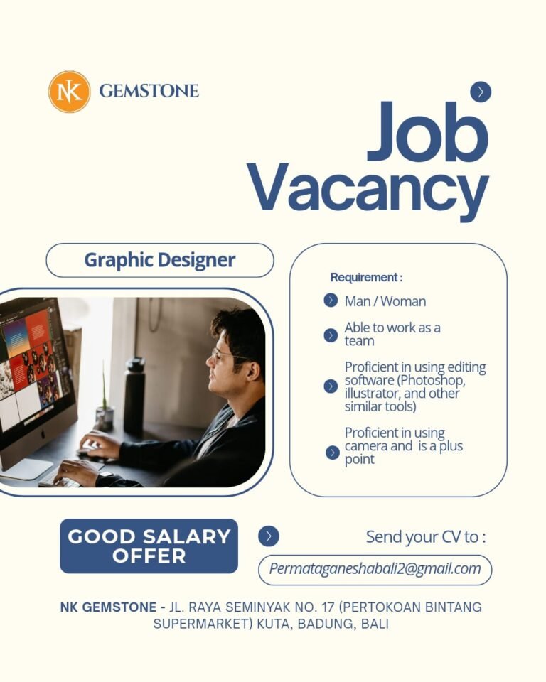 NK Gemstone is looking for a talented Graphic Designer to join our team in Seminyak! 🇮🇩