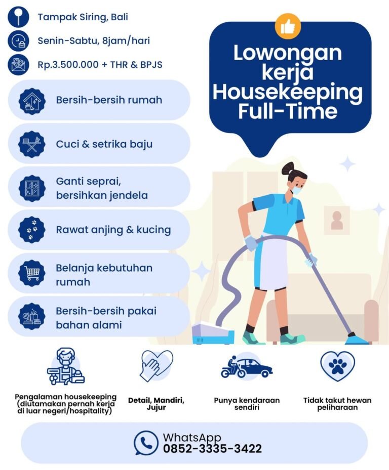 We are looking for a full-time Housekeeper for a private residence in Tampak Siring! 🇮🇩