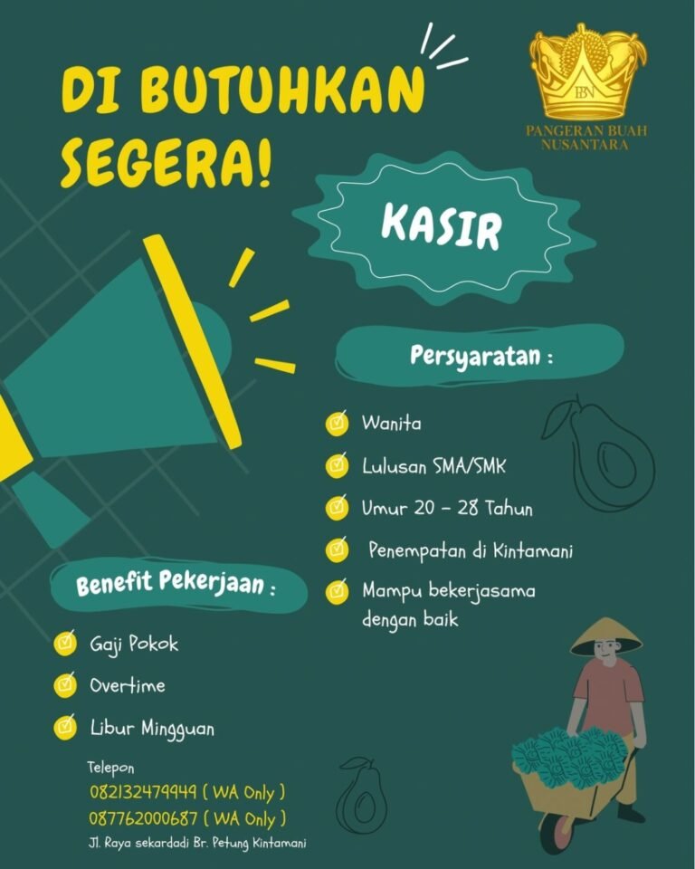 Pangeran Buah Nusantara is urgently looking for a new Kasir (Cashier) to join our team in Kintamani! 🇮🇩