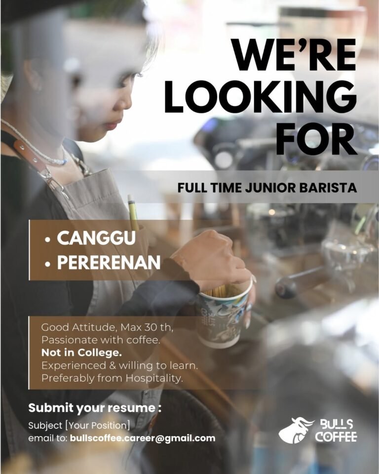 Bulls Coffee is looking for a full-time Junior Barista for our Canggu and Pererenan branches! 🇮🇩