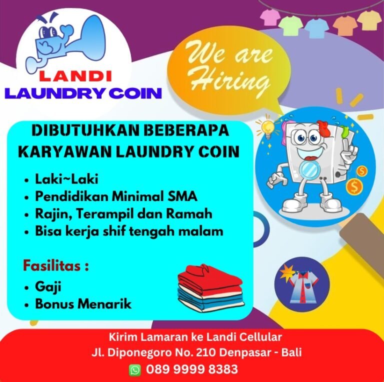 Landi Laundry Coin sedang membutuhkan beberapa karyawan laundry untuk bergabung dalam tim kami di Denpasar.