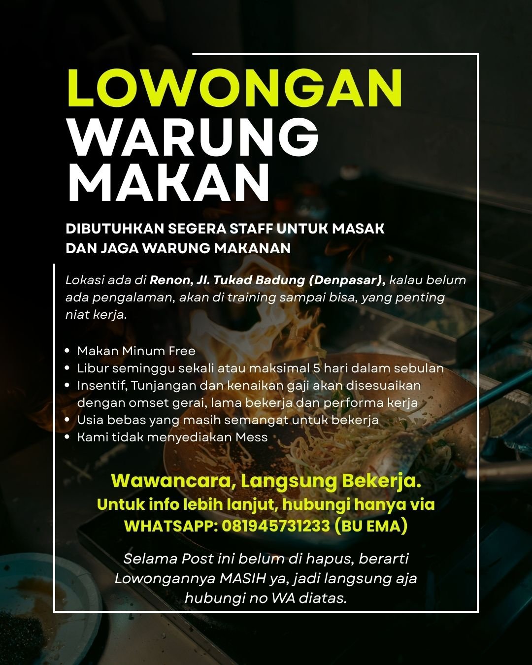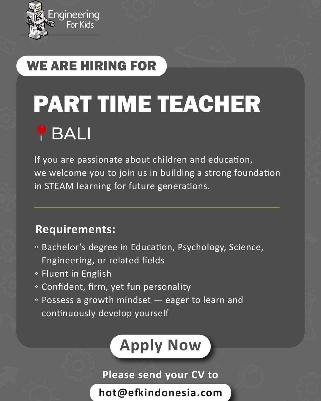 Cara Melamar: APPLY NOW! Kirimkan CV Anda ke kontak di bawah ini: