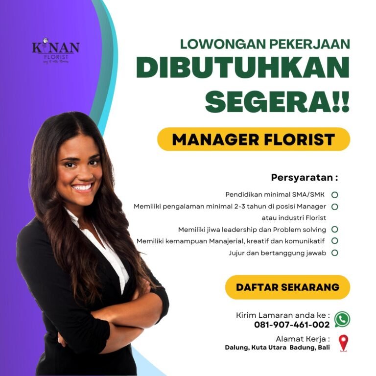 Kinan Florist is urgently looking for a new Manager Florist to join our team in Dalung! 🇮🇩