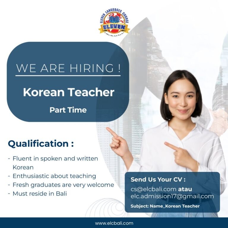 Eleven Languages Course (ELC Bali) is looking for a new Part-Time Korean Teacher to join our team in Denpasar! 🇮🇩