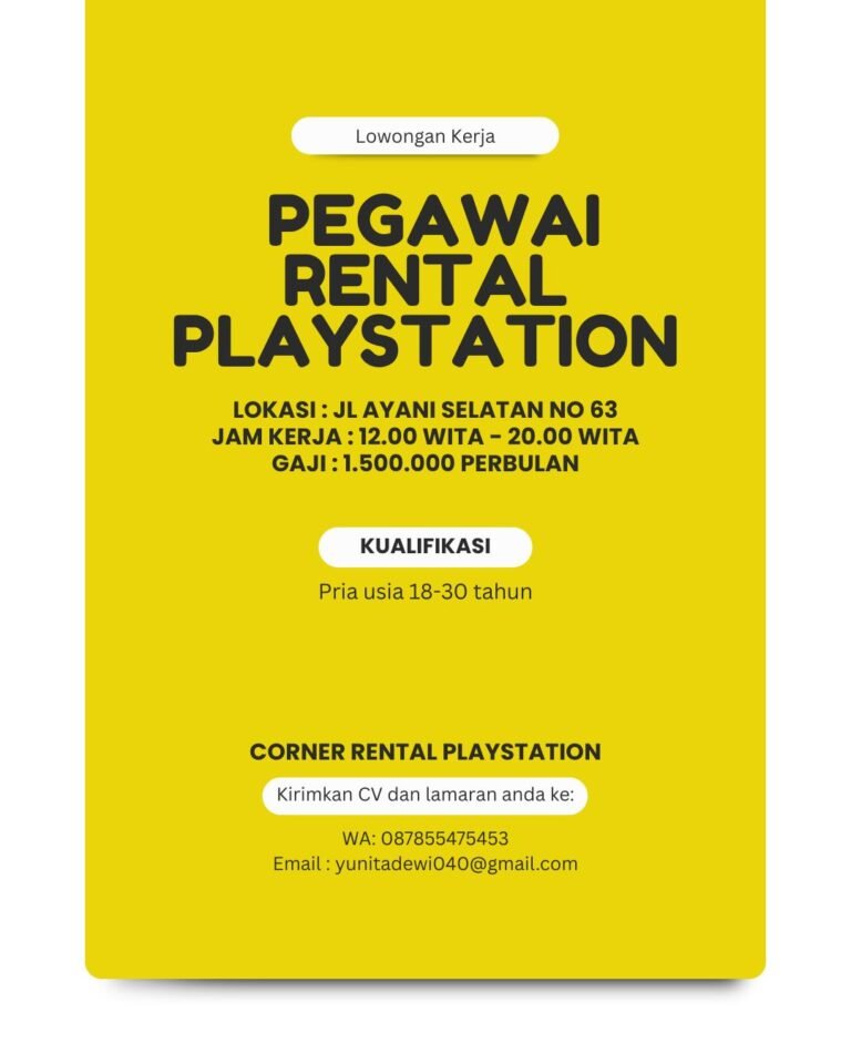 Lowongan Pekerjaan Pegawai Rental Playstation di Corner Rental Playstation – Denpasar