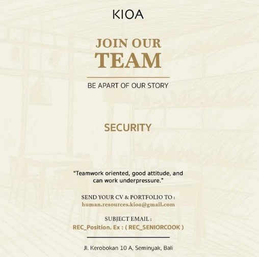 KIOA is looking for a professional Security guard to be a part of our story in Seminyak! 🇮🇩