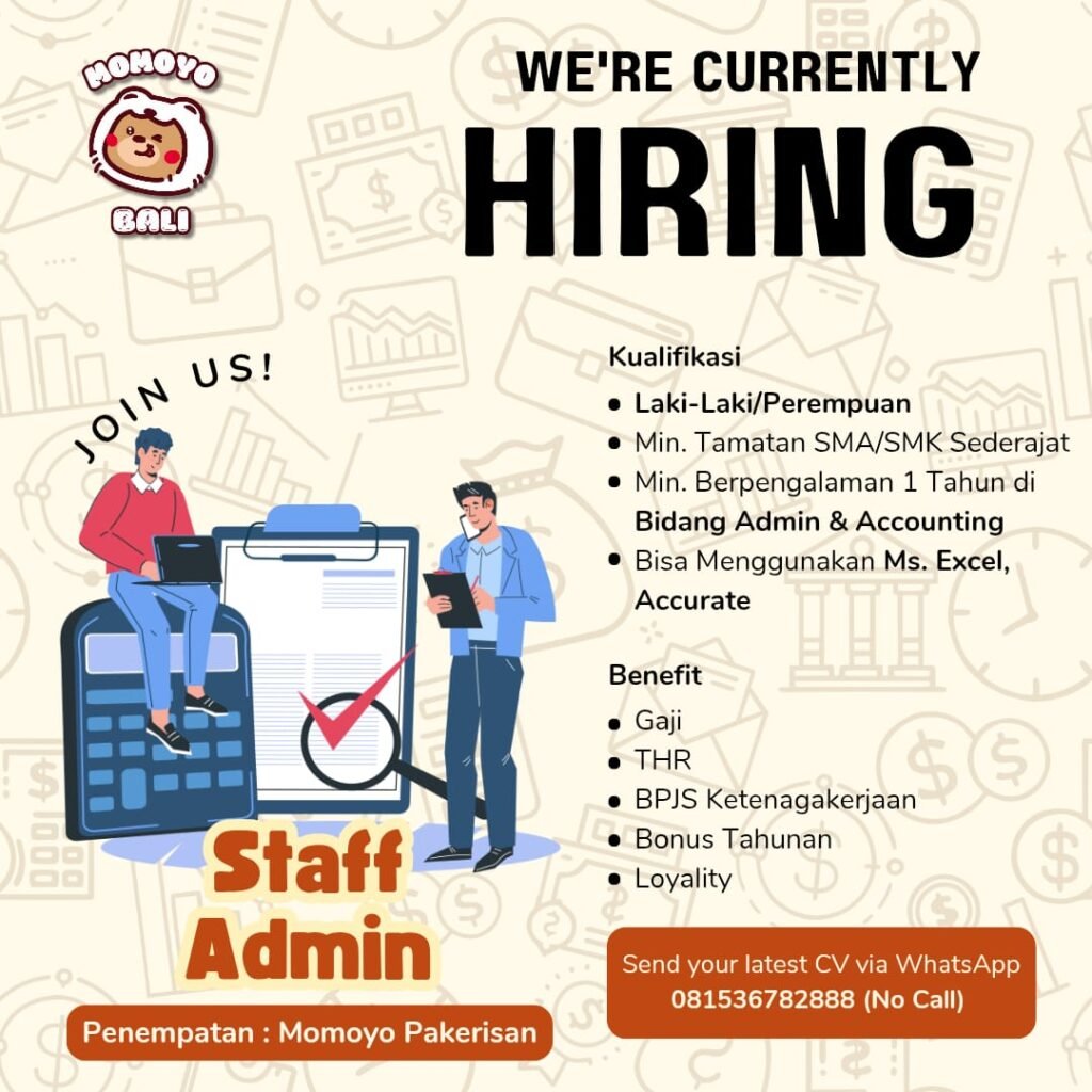 Momoyo Bali is looking for a Staff Admin to join our team at our Pakerisan outlet! 🇮🇩