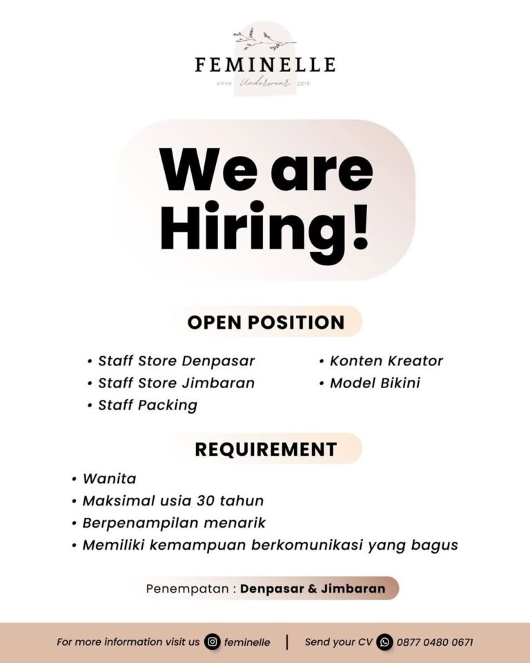 Feminelle Underwear is looking for new team members for our locations in Denpasar and Jimbaran! 🇮🇩
