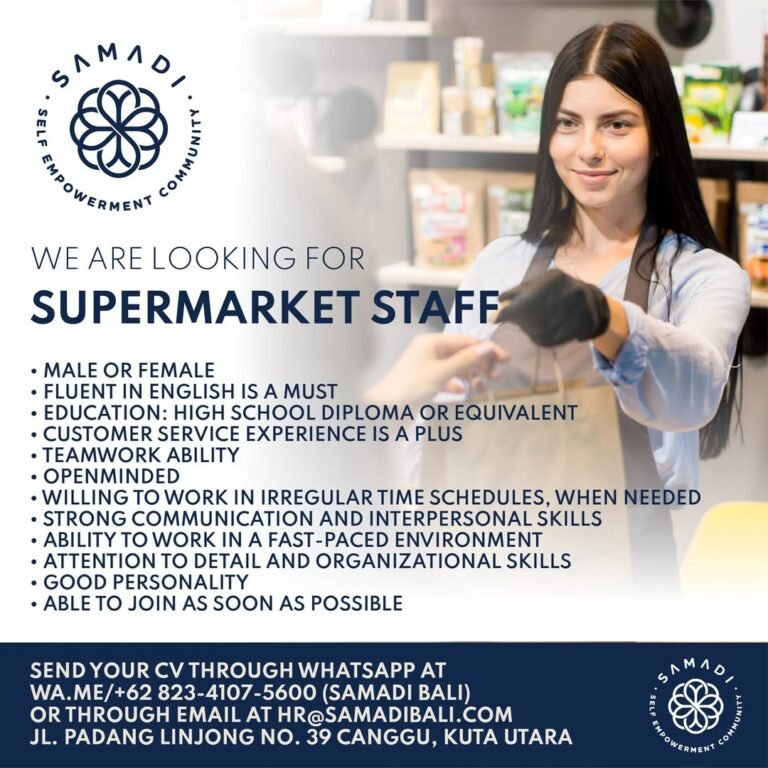 SAMADI Self Empowerment Community sedang membuka kesempatan bagi kamu yang energik dan bersemangat untuk bergabung sebagai Supermarket Staff.