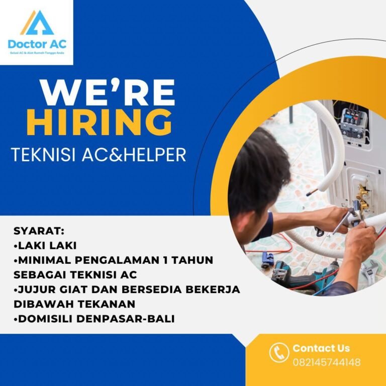 Doctor AC, penyedia layanan perbaikan dan perawatan AC rumah tangga, saat ini membuka lowongan untuk posisi Teknisi AC & Helper di wilayah Denpasar, Bali.
